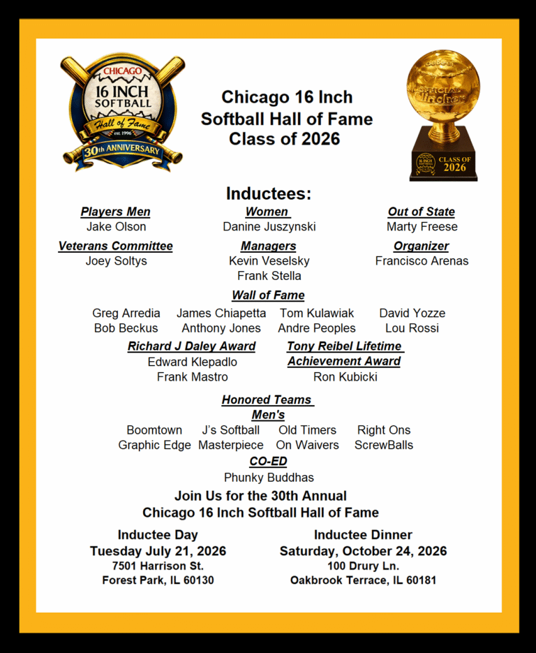 The first book about the history of 16-inch softball also describes the journey of the Chicago 16 Inch Softball Hall of Fame celebrating its 25th anniversary.